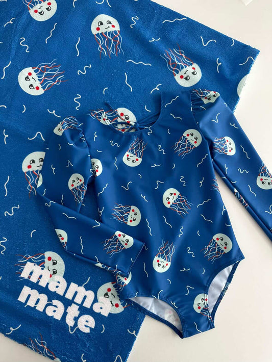 Произведен в Италия, нашият плат за бански е създаден от рециклирани влакна с Global Recycled Certificate клас 1 и е сертифициран за безопасност при контакт с бебешка кожа. Осигурява UV защита UPF 50+, устойчив е на хлор и е изключително приятен на допир. Състав: 78% рециклиран полиестер, 22% еластан.