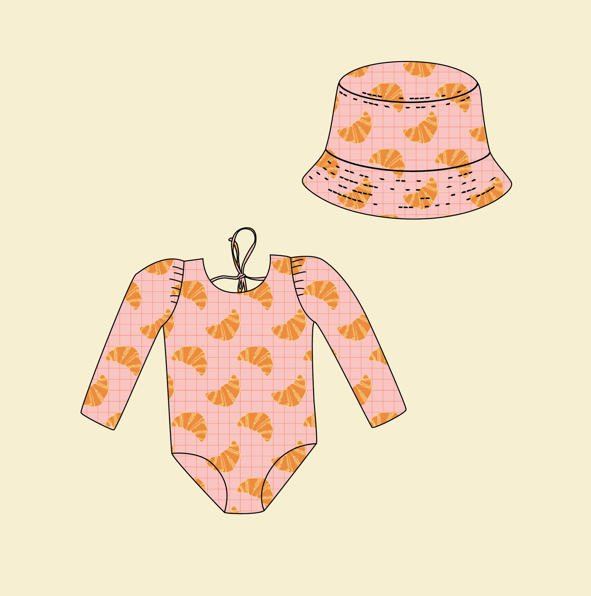 *PRE-ORDER* Bundle бански & шапка - MARINA - Детски цял бански с дълъг ръкав и UV защита (UPF 50+) - кроасани pink SS26