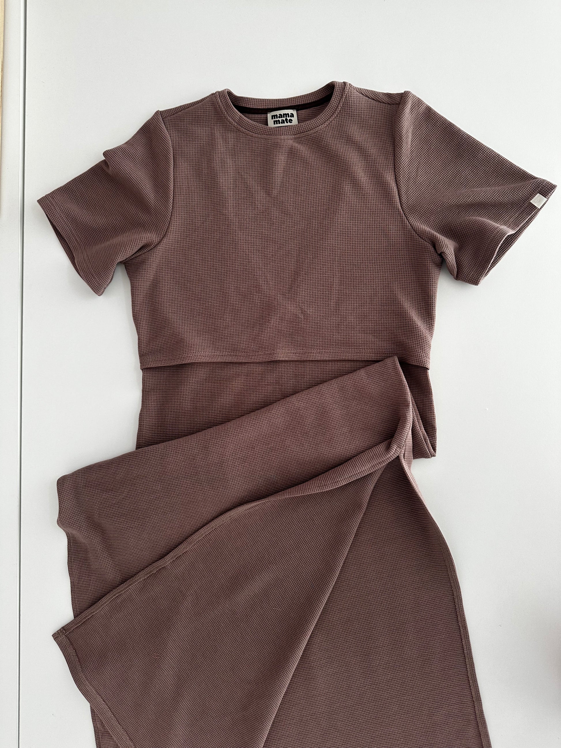 Колекцията включва тениска, блуза с дълъг ръкав и рокля – с къс и с дълъг ръкав. Четири внимателно проектирани модела, които имат лесен достъп за кърмене, без компромис с визията; мека, дишаща материя (със сертификат за липса на вредни вещества), подходяща за чувствителната кожа в следродилния период.