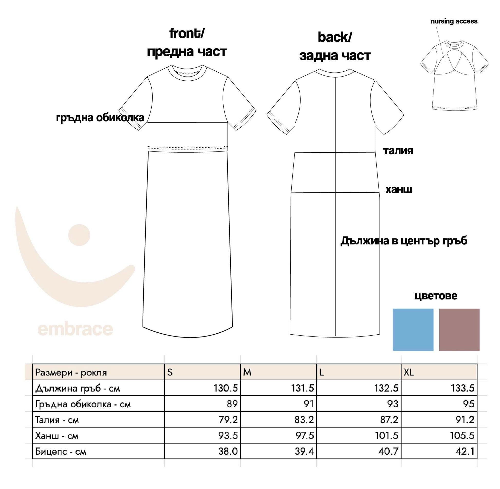 VALERIA - дълга рокля с къс ръкав за бременни и кърмене - limited edition