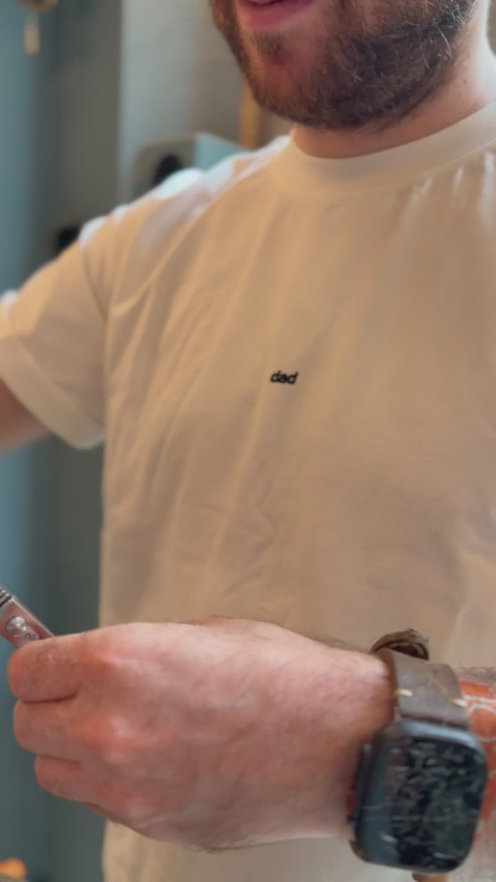 Oversized men's t-shirt - "dad/dad/dad/daddy" in ecru