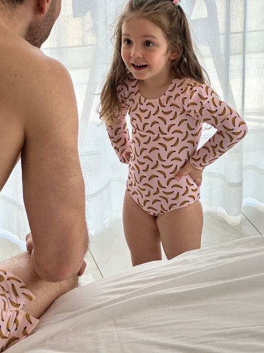 MARINA - Детски цял бански с дълъг ръкав и UV защита (UPF 50+) - бананов принт