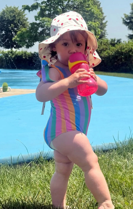 Двулицева детска шапка тип ‘Bucket Hat’ с UV защита – ръчно рисуван дизайн - ягоди